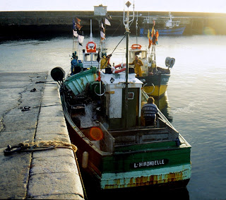 The decline of fishery, especially coastal fishery is a complex topic avec different issues worldwide, including industrial developments and marine ecology. While in the 30 Groix had more than 300 boats, there remained about 30 in the 70s and now the number goes to 1%. See examples at Port Tudy in the 90s: